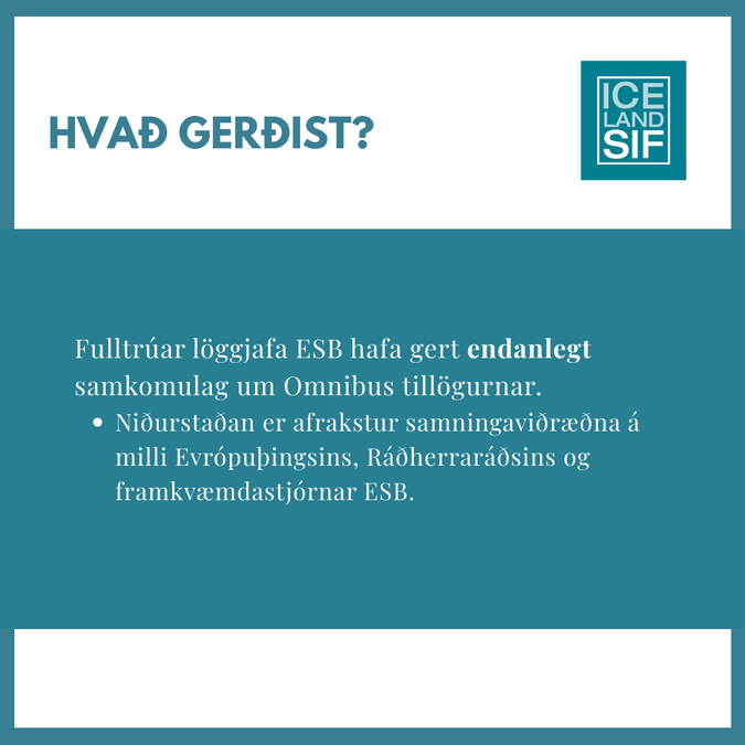 IcelandSIF hefur tekið saman það helsta er varðar Omnibus og tillögurnar sem kynntar voru nú á dögunum hjá ESB.