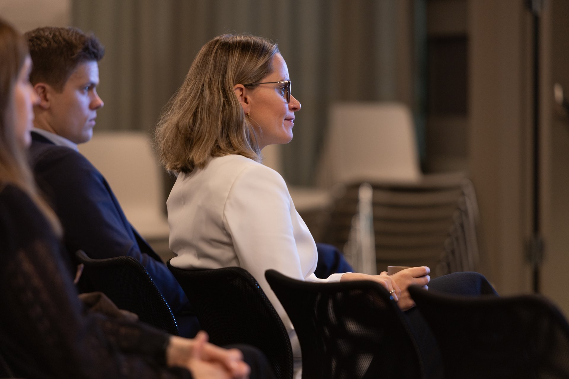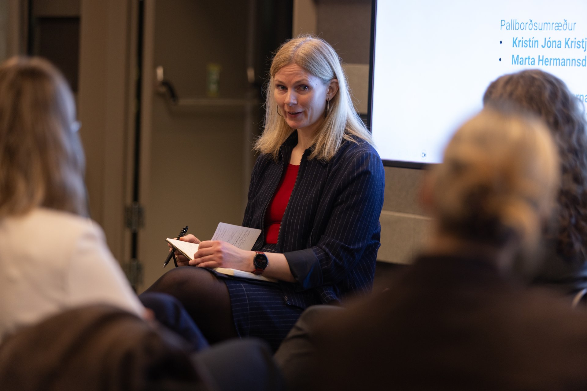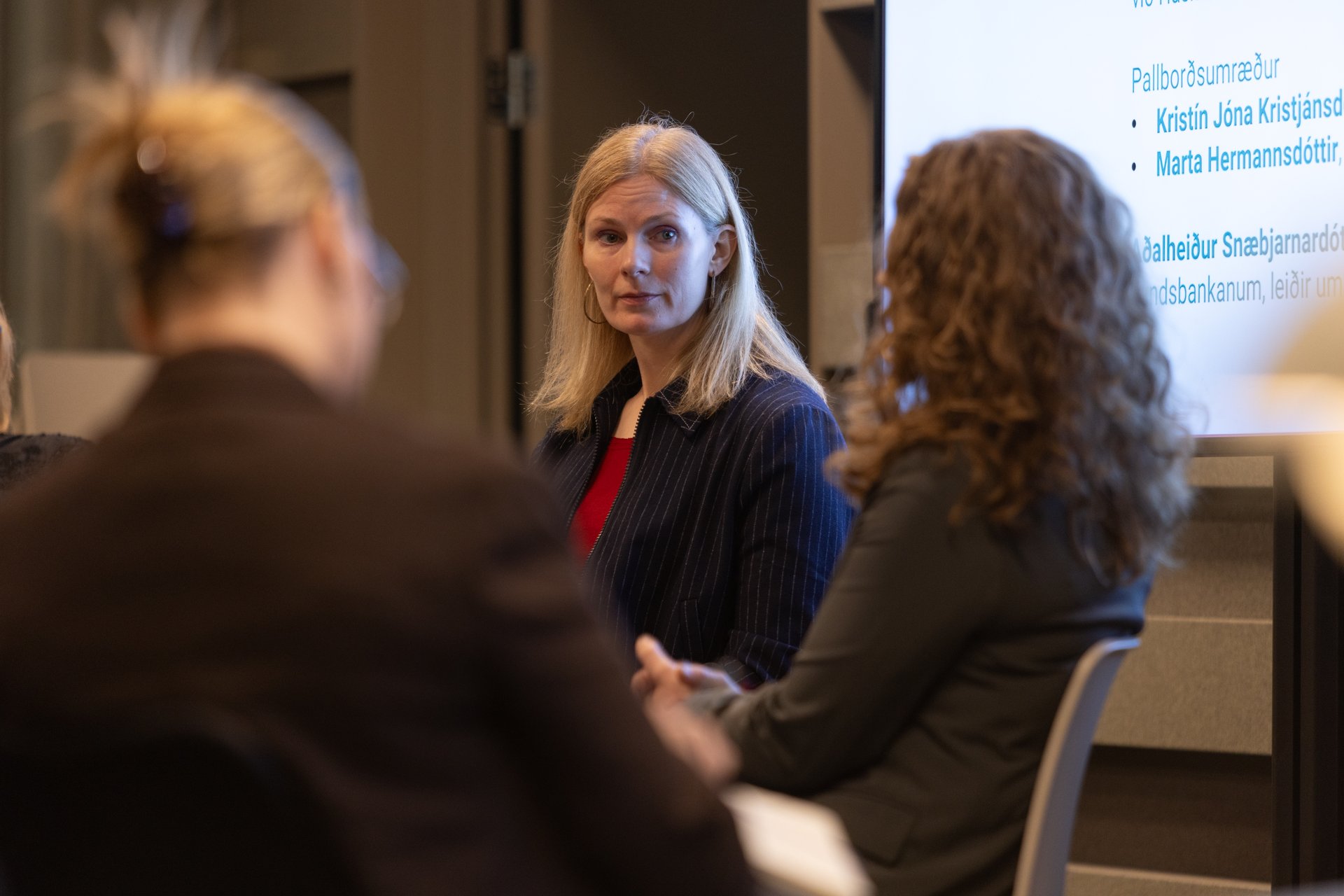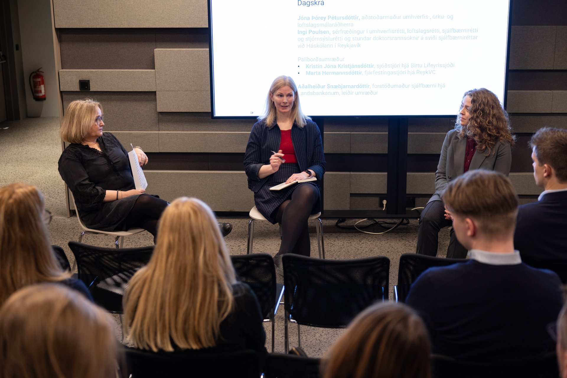 Að loknum erindum voru pallborðsumræður sem Aðalheiður Snæbjarnardóttir, forstöðumaður sjálfbærni Landsbankans, stýrði og fékk til sín Kristínu Jónu Kristjánsdóttur, sjóðstjóra hjá Birtu Lífeyrissjóði og Mörtu Hermannsdóttur, fjárfestingastjóra hjá ReykVC. Þær ræddu m.a. hvernig stjórnvöld geta liðkað fyrir fjármögnun loftslagsaðgerða í einkageiranum og hvernig hægt sé að styðja enn frekar við flæði fjármagns til fjárfestinga vegna loftslagsaðgerða stjórnvalda.